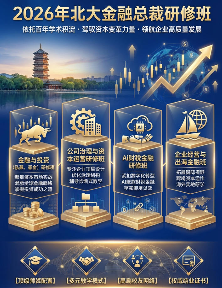 在金融变革风起云涌的时代,企业家金融素养已成为企业高质量发展的核心竞争力。2026年,北京大学依托百年金融学术积淀,为企业家量身打造了多维度、专业化的金融总裁研修课程体系,助力企业领袖把握金融脉搏,驾驭资本力量。