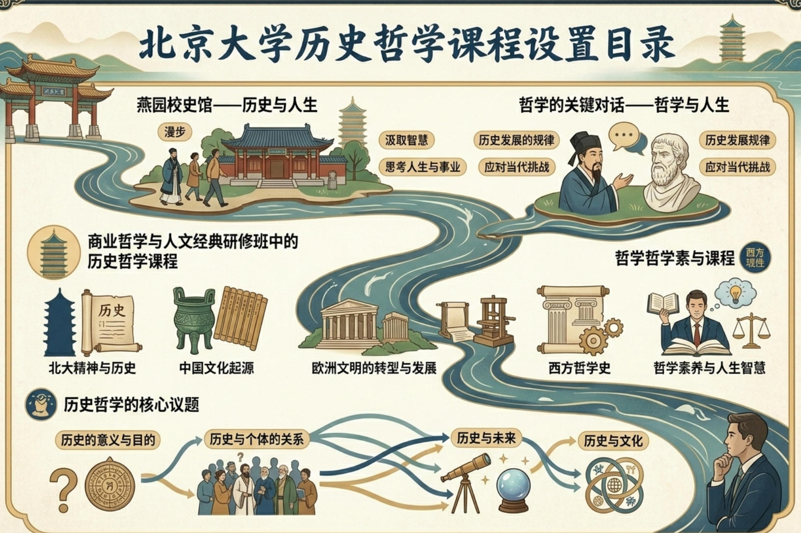 历史哲学是哲学的重要分支,它通过对历史的反思,探讨历史的意义、目的和规律。北京大学作为中国顶尖学府,其历史哲学课程设置丰富而系统。本文将为您详细介绍北京大学历史哲学课程的设置目录。