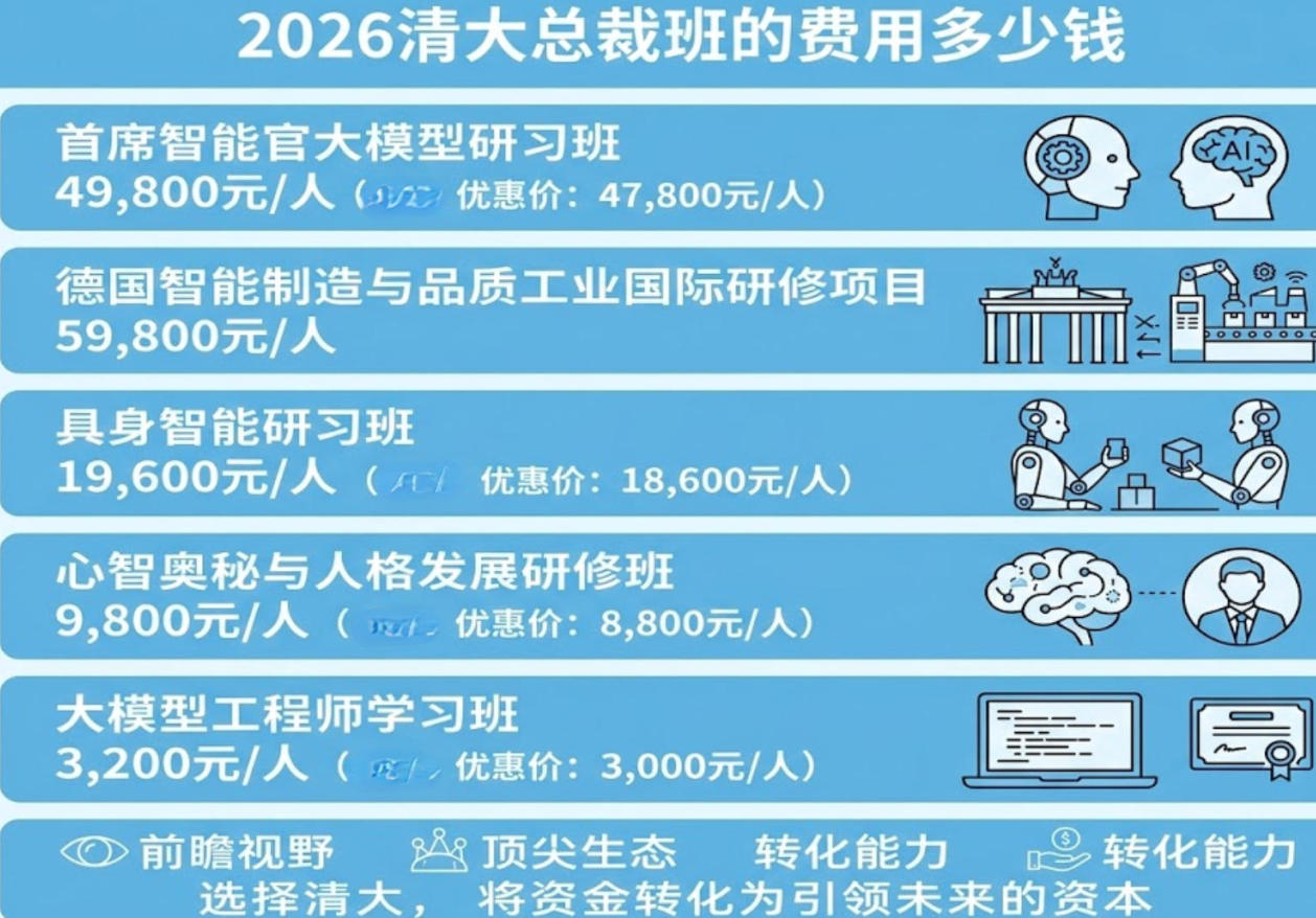 在追求卓越的道路上,每一笔投资都关乎未来的价值。当您将目光投向中国高等教育的巅峰——清华大学的总裁研修班,一个现实而关键的问题随之浮现:这趟启迪智慧、重塑格局的学习之旅,究竟需要多少投入?2026年,清华大学继续教育学院为企业领袖们精心设计了一系列课程,其费用体系清晰透明,旨在让每一分投资都物超所值,直指未来。本文将为您详细解读。
