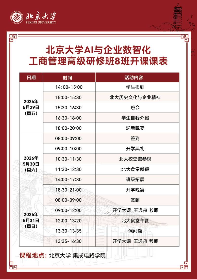 北京大学 · AI与企业数智化工商管理高级研修班8班 · 2026年5月29-31日